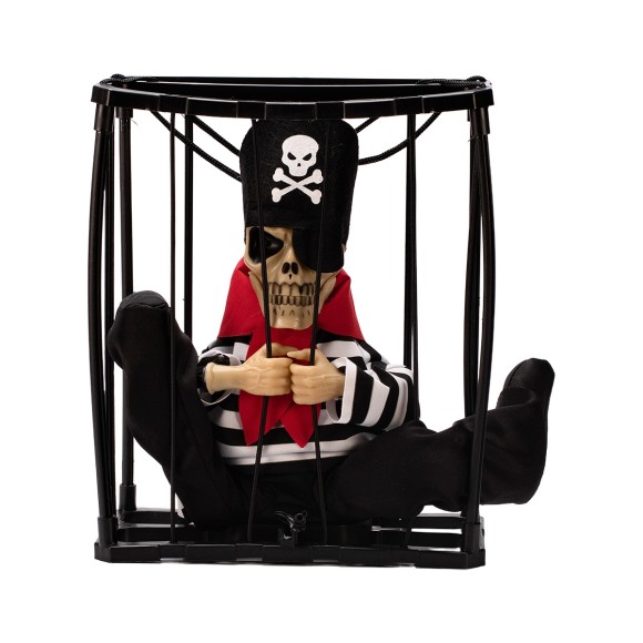 Que tal decorar sua festa com essa caveira presidiária? Além de emitir sons assustadores, ela acende os olhos e balança as