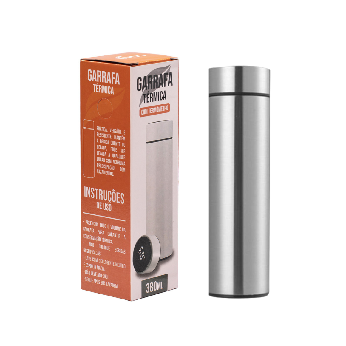 - Garrafa Térmica com termômetro digital e display inteligente. Mostra a temperatura da bebida ao tocar na tampa.
